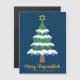Cette carte magnétique de Merry Chrismukkah présente un arbre de Noël vert décoré d'ornements de dreidel bleus et d'une étoile juive de David en or au sommet pour Hanukkah pour combiner les 2 fêtes pour une famille qui célèbre les deux. Des aimants cool.