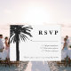 Cartes mariages RSVP Palm tree | Thème de plage tropical. Donnez à vos invités un moyen de répondre s'ils viennent à votre élégant mariage de plage. Ce design va à l'ensemble avec les invitations de réception de mariage. Qualité du texte et du papier personnalisable.