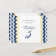 Elégante et moderne citron jaune, bleu marine foncé et blanc mariage carte de numéro de table avec motif rétro amusant chevron zigzags rayures. Customisez ces cartes pour créer des cartes numériques personnalisées pour chaque table de votre mariage. Ajoutez vos noms et votre date de mariage. Motif disponible dans une large gamme de produits mariages correspondants.