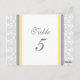 Cartes de numéro de table de mariage jaune, gris et blanc canari élégant et classique avec motif vintage romantique à damas fleuri. Customisez ces cartes pour créer des cartes numériques personnalisées pour chaque table de votre mariage. Motif disponible dans une large gamme de produits mariages correspondants.