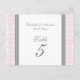 Elégante et classique pastel clair rose, gris et blanc mariage des cartes de numéro de table avec romantique motif vintage à damas fleurie. Customisez ces cartes pour créer des cartes numériques personnalisées pour chaque table de votre mariage. Ajoutez vos noms et votre date de mariage. Motif disponible dans une large gamme de produits mariages correspondants.