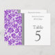 Elégante et moderne violet clair, gris et blanc mariage carte numéro de table avec chic et classique floral damask vintage motif. Customisez ces cartes pour créer des cartes numériques personnalisées pour chaque table de votre mariage. Ajoutez vos noms et votre date de mariage. Motif disponible dans une large gamme de produits mariages correspondants.