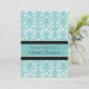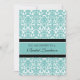 Invitations nuptiales de déjeuner dans le bleu de turquoise élégant, motif floral classique noir et blanc de damassé, élégant et féminin, personnalisable avec vos détails de douche. Également disponible merci dedans des cartes et des invitations de la partie nuptiale.