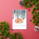 Création aquarelle d'hiver peinte à la main par Shelby Allison représentant un petit renard orange dormant dans une forêt enneigée. Personnalisez ce design avec votre texte au recto et au verso de la carte avec une photo facultative au verso.