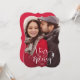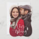Caractéristiques de conception ce une disposition de photo de plein-purge et un de fête, salutation "très joyeuse" en manuscrit blanc. L'appui rouge inclut l'espace pour ajouter un message personnel ou une photo supplémentaire.