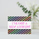 Cette carte postale fantaisiste et amusante de changement d'adresse comporte le message « J'AI UNE NOUVELLE ADRESSE ! » sur le devant, et un message personnalisable au verso. Des cartes postales comme celle-ci pourraient être utilisées pour informer les amis et la famille que l'expéditeur a déménagé dans une nouvelle maison ou un nouvel appartement.