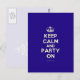 Basé sur l'original Keep Calm et ... poster cette crème et bleu Keep Calm et Party On Postcard dispose d'une police personnalisée qui correspond à l'original étroitement.