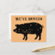 Cartes postales animées mignonnes avec silhouette de cochon. Texte animé personnalisé ; Nous avons déménagé ! Ajoutez votre nouvelle adresse au dos. Cartes de réinstallation vintage pour la maison, la ferme ou l'entreprise laitière.