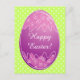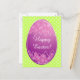 Cartes postales aux oeufs de Pâques avec motif pois blanc. combinaison de couleurs joyeuses, violet et vert. Message personnalisé, Bonne Pâques. Conception sympa pour les enfants chasse aux oeufs invitation de fête.