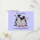 Illustration graphique d'un couple de manchots aimant la fête. Personnalisez ce design avec vos noms personnels ou votre message spécial.