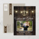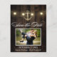 Cartes postales d'annonce de mariage à l'ancre nautique rustique - personnalisez avec une photo qui vous est propre. Le design présente un fond rustique de grange ou de bois avec des guirlandes lumineuses et une ancre dorée élégante.