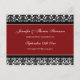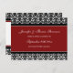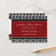 Cartes postales d'annonce de mariage dans un élégant motif damassé floral classique rouge, noir et blanc, personnalisables avec vos noms et détails de mariage, le moyen idéal pour annoncer votre mariage à vos amis et à votre famille. Disponibles dans une large gamme de produits de mariage assortis.
