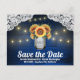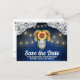 Cartes postales de faire-part de mariage en bois de jarre de maçon tournesol - Les faire-part de mariage en bois de jarre de maçon tournesol présentent un fond en bois de grange bleu marine ou bleu décoré de dentelle et orné de guirlandes lumineuses à cordes chaudes. Le design présente également un bouquet de tournesols à l'intérieur d'un pot Mason dont vous pouvez personnaliser les initiales à votre choix.