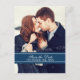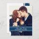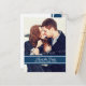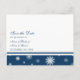 Cartes postales d'annonce de sauvegarde de date de mariage personnalisées pour mariage d'hiver dans un élégant et moderne motif de flocons de neige festifs bleu marine foncé et blanc, stylées et entièrement personnalisables avec vos détails de mariage et votre propre photo. Parfait pour un mariage de Noël ou d'hiver. Également disponible dans de nombreux autres produits pour la fête de mariage.