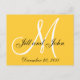 Cartes postales de monogramme personnalisées pour annoncer votre mariage. Personnalisez avec vos noms, initiale et date de mariage. Faites correspondre votre schéma de couleurs de mariage en changeant les couleurs de fond et de texte en sélectionnant l'option "personnaliser". Un design populaire en 2008 de la Galerie Monogramme, porté à votre attention comme un moyen classique élégant d'annoncer votre date de mariage 2011. Conçu par Elke Clarke ©2008, 2009, 2010.