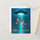 Cartes Postales Fêtes Drôle. Père Noël enlevé par des aliens / OVNI. Idéal pour les cartes postales de vacances en famille, les cartes de Noël, les cartes de fin de année d'affaires ou d'entreprise.