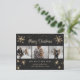 Créez vos propres cartes postales de Noël avec un collage photo avec étoiles, flocons de neige et un magnifique titre de script écrit à la main. Personnalisez facilement cette carte postale Joyeux Noël avec votre image, et un nom de famille. Vous pouvez également ajouter du texte au verso de cette carte postale.