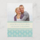 Cartes postales de photo d'annonce de fiançailles dans un élégant motif vintage bleu turquoise clair et crème blanc cassé, personnalisables avec vos noms, le moyen idéal pour annoncer vos fiançailles à vos amis et à votre famille. Disponibles dans une large gamme de produits de mariage assortis.