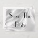 Cartes postales romantiques "Sauver la date" pour invitations de soirée et d'événements spéciaux. Le fond est en satin blanc élégant. Le texte peut être facilement modifié et personnalisé. Idéal pour les mariages à venir, les fiançailles, les anniversaires de mariage et les soirées d'anniversaire, etc. Le verso peut également être personnalisé avec plus de texte ou simplement supprimer le texte d'exemple pour écrire à la main plus tard.
