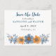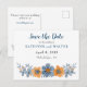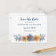 Ces cartes postales personnalisées sont parfaites pour les cartes "save the date" de mariage. Elles présentent une illustration florale de style aquarelle dans des nuances plus douces de bleu et d'orange, ce qui les rend parfaites pour les mariages et les événements spéciaux d'automne. Utilisez les champs du modèle pour personnaliser facilement ces cartes de réponse avec vos informations. Vous avez plus d'informations que vous devez inclure ? Sélectionnez l'option PERSONNALISER pour ajouter du texte supplémentaire à ces cartes postales.