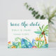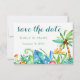 Cette carte postale "Save The Date" tropicale et colorée est parfaite pour le couple qui aura un mariage sur une plage hawaïenne, un mariage sur une plage de Floride ou un mariage sur une plage des Caraïbes. Des images aquarellées d'hibiscus, de feuilles exotiques, d'oiseaux de paradis, de fleurs tropicales, de ananas et de palmiers ornent la carte au recto et au verso. Cette invitation présente des couleurs bleue, verte, rose, orange, jaune et rouge. La couleur du motif en chevron au verso peut être personnalisée selon vos préférences. Le texte est entièrement personnalisable. Consultez ma collection complète "Tropical Floral Wedding" pour plus d'articles dont vous pourriez avoir besoin pour votre mariage tropical exotique !