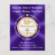 Cartes postales "Épargnez la date" pour un 50e anniversaire de mariage chrétien, bon marché mais magnifiques. 50 diamants et dorés, avec une croix et de jolies volutes entourées de riches motifs de couleur pourpre royal et de paillettes dorées. Vous pouvez, ou appelez la designer Linda : 239-949-9090 EST, transférer ce design sur des invitations, supprimer n'importe quel texte ou design. Seule la designer Linda peut changer les couleurs selon votre thème d'anniversaire de mariage chrétien de 50 ans. Je peux également concevoir des cartes postales "épargnez la date", des invitations, des fournitures de fête, des cadeaux et plus encore, assortis et coordonnés pour un 50e anniversaire de mariage.
