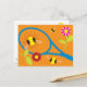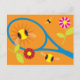 Jolies cartes postales de tennis pour nouvelle adresse party & plus. Illustration colorée de raquette de tennis avec des balles et des fleurs en forme d'abeille. Cartes postales personnalisées pour déménager, déménager, nouvelle maison, changement d'adresse, Anniversaire etc. Aussi agréable comme tournoi invitation ou partie barbecue côté cour à la maison club. Impression double côté. Graphiques amusants pour joueur de tennis, entraîneur sportif, entraîneur, enseignant, enfants, enfants, maman etc.