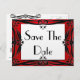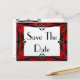 "Sauver la date" romantique sur fond blanc carte postale pour occasions spéciales, invitations de fête et d'événements. Le fond est élégant avec des bordures en satin rouge et un design de bordure original décoratif en noir contrasté qui encadre la carte de manière magnifique. Le texte peut être facilement modifié et personnalisé. Idéal pour les prochaines fêtes de Noël et les vacances, mariages, fiançailles, anniversaires de mariage et fêtes d'anniversaire, etc. Le verso peut également être personnalisé avec plus de texte ou simplement supprimer le texte d'exemple pour écrire à la main plus tard.