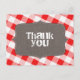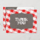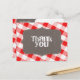 Canvas rustique rouge en vichy du Sud merci les cartes postales en Merci blanc sur une illustration de texture de toile marron, sur un motif en diagonale rouge et blanc en vichy. Le côté arrière est personnalisé avec votre propre message de remerciement personnalisé. Vous pouvez aussi facilement supprimer le texte modèle pour laisser la ou les cartes en blanc pour écrire votre propre sentiment de gratitude. Ces cartes postales en toile en vichy rouge, avec leur motif en vichy classique, sont parfaites pour les célébrations de Baby shower et de Fête des mariées du Sud.