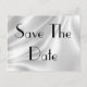 Carte postale romantique "Enregistrez la date", invitations pour occasions spéciales et événements. Le fond est en satin blanc élégant. Le texte peut être facilement modifié et personnalisé. Idéal pour les mariages, fiançailles, anniversaires de mariage et fêtes d'anniversaire à venir, etc. Le verso peut également être personnalisé avec plus de texte ou simplement supprimer le texte exemple pour écrire à la main plus tard.