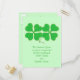 La peinture de deux shamrocks verts, quatre trèfles de feuilles, découpés en points d'or, est imprimée sur les cartes postales Faire-part de mariage. Customisez facilement le texte sur les formulaires modèles.