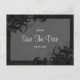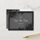© Sunny Mars Designs - Fleur d'Hibiscus florale : Cartes postales noir sur fond gris foncé pour annoncer votre mariage - Élégantes, modernes, chic, tendance, personnalisables cartes postales gothiques pour annoncer votre mariage avec un beau design floral tropical noir et tourbillonnant.