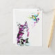 L'aquarelle a été utilisée pour faire les images d'un chaton observant un colibri volant au-dessus de lui. Il s'agit d'une impression sur une carte postale.