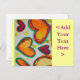 Les coeurs de pêche, rose et orange alternent vers le haut et vers le bas, créant une joyeuse félicité rose fille. Un contour vert trace chaque coeur. Les points de couleur jaune pâle sont comme des confettis entre les coeurs. La peinture à l'aquarelle a une légère couche d'or et de rose sur le dessus. Personnalisez cette carte postale avec votre propre texte et vos propres images.