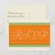 Cartes postales rsvp oranges fraîches et design moderne. Inclure avec nos invitations de mariage assorties et demandez à vos invités rsvp avec ces cartes postales faciles à customiser. ©2010WeddingBells