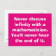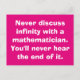 Ne discutez jamais d'infini avec un mathématicien. Vous n'entendrez jamais la fin.