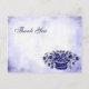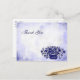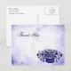 Cartes postales Merci avec lettres cursives et espace pour votre adresse de retour personnalisée et illustration vintage d'un panier de fleurs bleues sur fond de toile fausse. Cliquez sur Personnaliser pour changer les polices et plus encore !