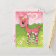 Cette carte postale douce présente mon illustration originale de Pink Deerie, un cerf aux gros yeux avec des bas rayés devant un ciel rose radieux avec des coeurs et des fleurs - cliquez sur PERSONNALISER pour ajouter votre propre texte à l'arrière - idéal pour envoyer dans le courrier OU pour afficher comme art abordable! Pour en savoir plus sur mon art et mes illustrations, visitez le site facebook.com/MelanieTaylorARTIST