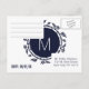 Elégante, moderne et chic blanc et tendance bleu marine motif dessiné à la main, carte postale RSVP. Ce design classique et sophistiqué est parfait pour tout événement élégant et branché, y compris les mariages et les occasions quotidiennes. Personnalisez avec votre propre message sur l'avant ainsi qu'avec un premier monogramme customisé sur l'arrière. Toute la conception d'impression photo.