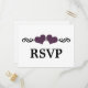 Cartes postales Sweet and whimsical Elegant Hearts Mariage Response avec une bordure pivotante fantaisie ornée d'une paire de coeurs violets. Cette carte postale RSVP de mariage moderne est le choix idéal pour un mariage chic et élégant. Facile à customiser, il suffit d'ajouter les détails de votre mariage dans les champs de texte fournis. Cliquez sur "Customiser" pour trouver d'autres options de personnalisation.