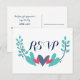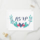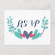 Cartes postales colorées et fantaisistes Coeurs et Vins Réponse Mariage Carte postale avec une jolie bordure de vigne stylisée et de coeur doux dans une jolie combinaison de turquoise, bleu et rouge. Ce design tendance et moderne se customise facilement avec vos détails mariages.