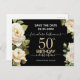 Fleurs de roses blanches aquarelle pour une fête d'anniversaire de 50 ans. Design floral élégant pour une célébration d'anniversaire de n'importe quelle année. Facile à personnaliser avec un modèle. Magnifique modèle de design pour invitation "save the date" d'anniversaire.