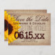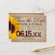 Cartes postales "Save the Date" à l'effigie de tournesols et de toile de jute pour un mariage country western. Le motif toile de jute est simplement un motif imprimé, et non du tissu de toile de jute véritable. Il suffit d'ajouter les noms des mariés et la date du mariage, ainsi que le lieu et toute autre information que vous souhaitez inclure dans ce modèle facile à utiliser. Ajoutez ensuite votre adresse de retour au verso. Économisez de l'argent sur les frais de port en envoyant ces cartes sous forme de cartes postales. Le fond est un motif toile de jute marron rustique en détresse des deux côtés avec une mise en page de police de caractères typographiques.
