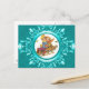 Carte postale, Vintage fille de bébé garçon sur un traîneau ou insérez votre photo dans un cadre de conception de défilement de flocon de neige bleu Icy