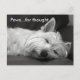 Ce sont de belles cartes postales de chien Terrier pour Westie (West Highland White). L'image montre un beau chien Westie endormi avec la mention 'Paws...for think' en haut à gauche. Super à envoyer pour n'importe quelle occasion.