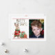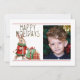 Happy Holidays One Photo Christmas Card avec un adorable lapin de Noël habillé en rouge et vert avec des cadeaux emballés.
