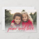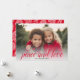 Rouge et blanc - Utilisez une photo horizontale et faites un accueil de Noël Joyeux unique et tendance avec un motif damassé élégant sur le dos. L'accueil est présenté dans une calligraphie moderne et rebondissante qui peut être changée pour répondre à votre dicton préféré. Le design simple et minimal met en valeur votre photo de famille. Si vous avez besoin de déplacer quelque chose, cliquez sur le bouton personnaliser pour apporter des modifications.