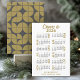 Un design gris or et charbon - Un look moderne pour une carte de vacances d'entreprise. Un calendrier est inclus avec le Nouvel An avec un message d'accueil qui peut être utilisé pour n'importe quelle entreprise. Ajoutez votre logo et un texte simple à ce design unique avec un motif moderne mi-lune du milieu du siècle sur le dos. Si vous avez besoin de déplacer quelque chose, cliquez sur le bouton personnaliser pour apporter des modifications.