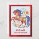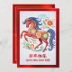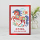 “Happy New Year” typography in both Chinese and English and a stunning visual of an elegant multi color cut paper horse, flowers and cloud overlay a traditional Asian light gray circle pattern and brushed red faux foil border on the front. On the back, a cloud and star visual, along with your personal message, overlay a brushed red faux foil background. Feel the warmth and joy of the holiday season whenever you send this stylish yet modern, personalized 2026 Chinese Lunar New Year of the Horse greeting card. Make sure someone special receives this greeting!