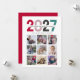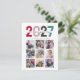 Modern 2027 Christmas card with "the best is yet to come" typography and a 9 photo collage front. Features a stylish plain red backside for a bold festive finish. Perfect for sharing family memories with a clean contemporary holiday design and personalized greeting. Original artwork by Caroline Bonne Müller